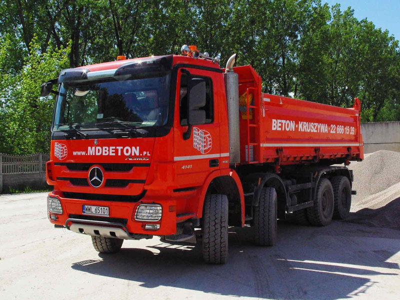 - Betonowozy o ładowności 10 m3 przewożące mieszankę betonową bezpośrednio do klienta.